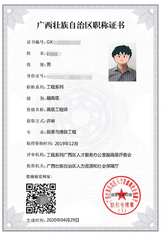 廣西職稱評(píng)審證書樣本-全國通用